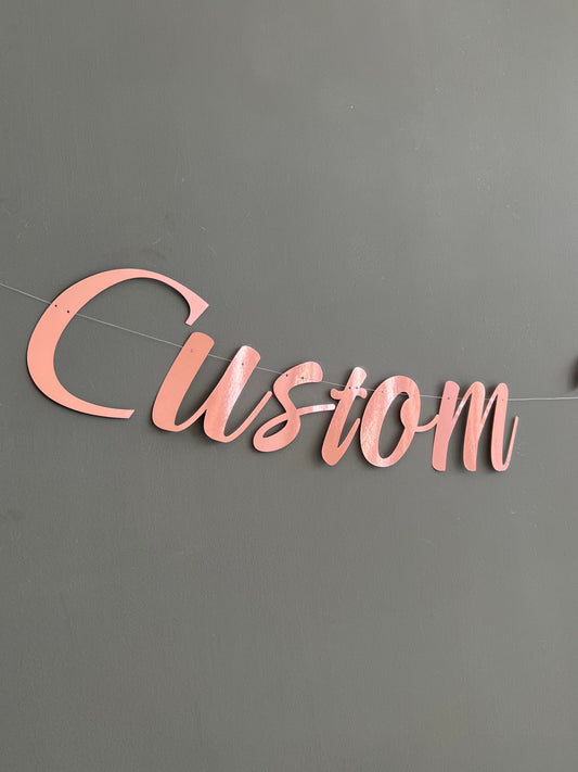 Customised Cursive Rose Gold Banner - Personalized Handmade party decorations for all occasions