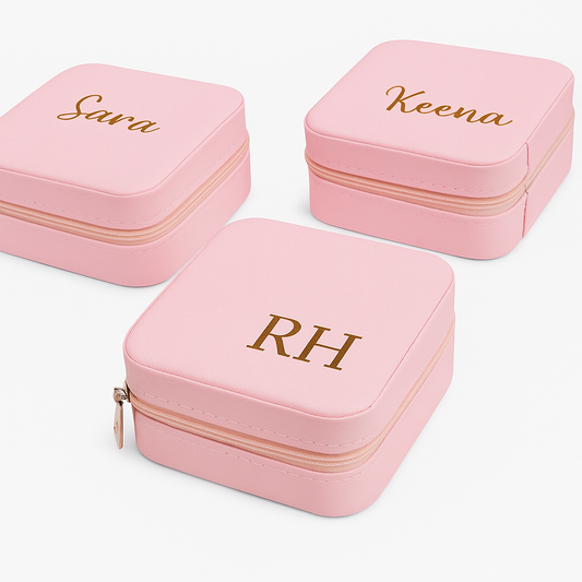 Personalized Square Travel Jewellery Box β Baby Pink
