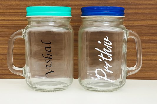 Personalised mason jar with straw and 2 lids - 1 lid with hole and 1 without hole