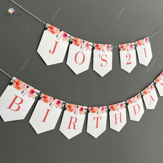 Personalised Floral banner for Women, Girl birthday, Bachellorette