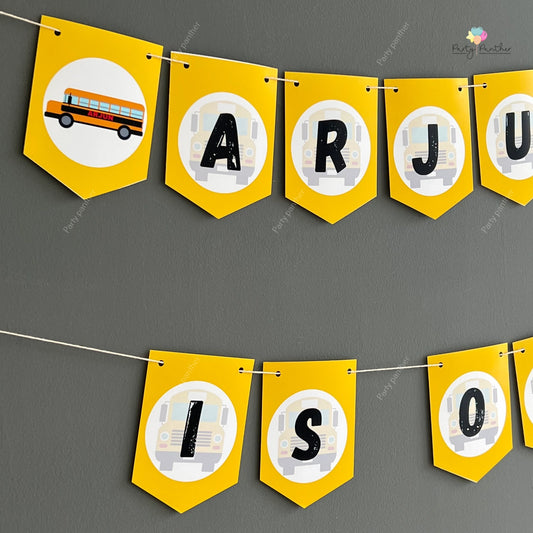 Personalised Bus Birthday Theme, Wheels on the bus Theme Banner - Personalised with any text or Number Custom Banner