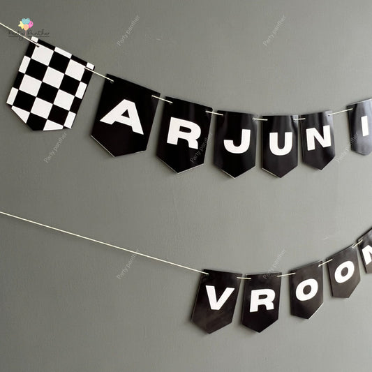Personalised Car Birthday Theme, Two Fast, Racing / Vroom Theme Banner - Personalised with any text or Number Custom Banner