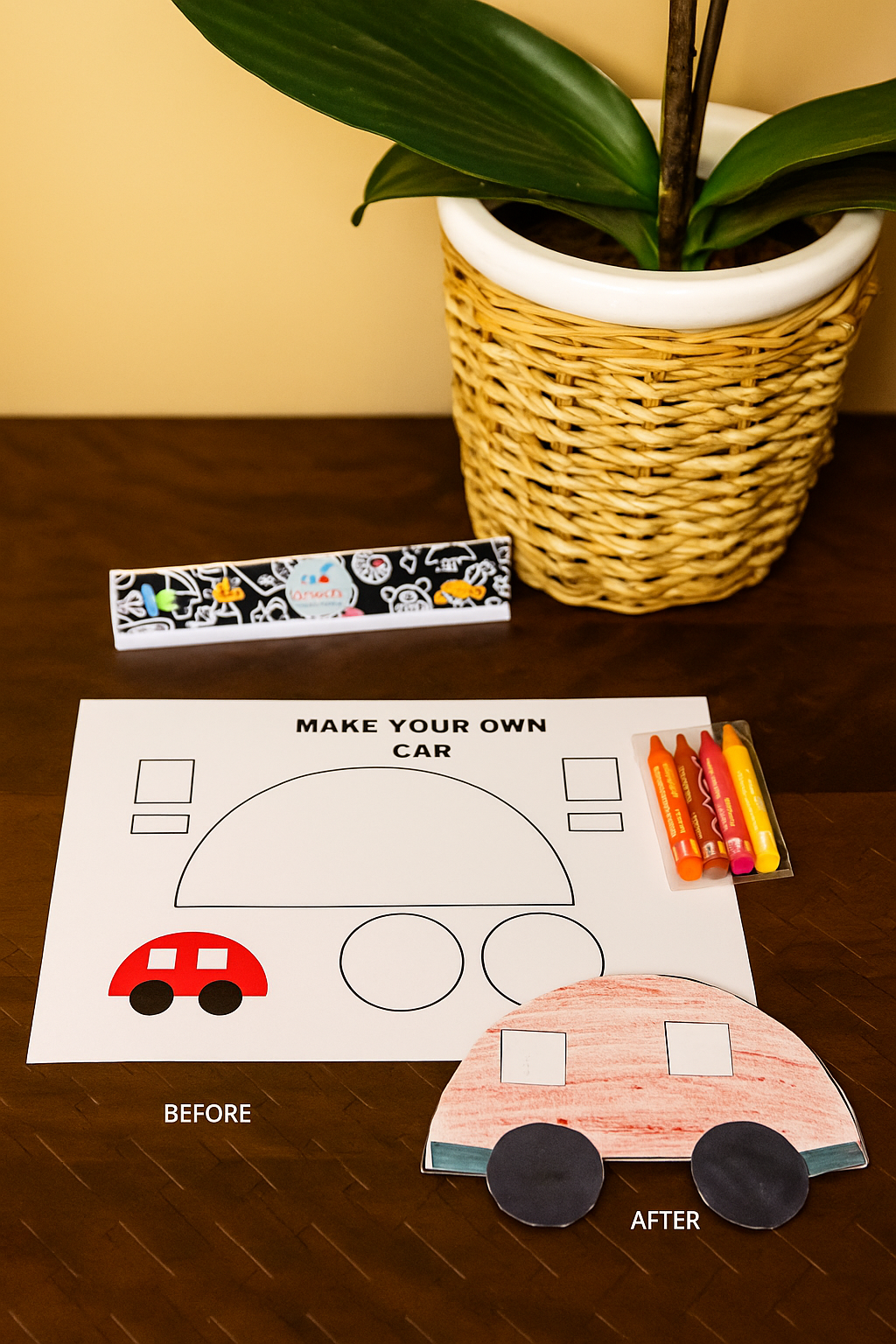 Perfect For: Craft time, car-themed parties, classroom projects, or screen-free fun