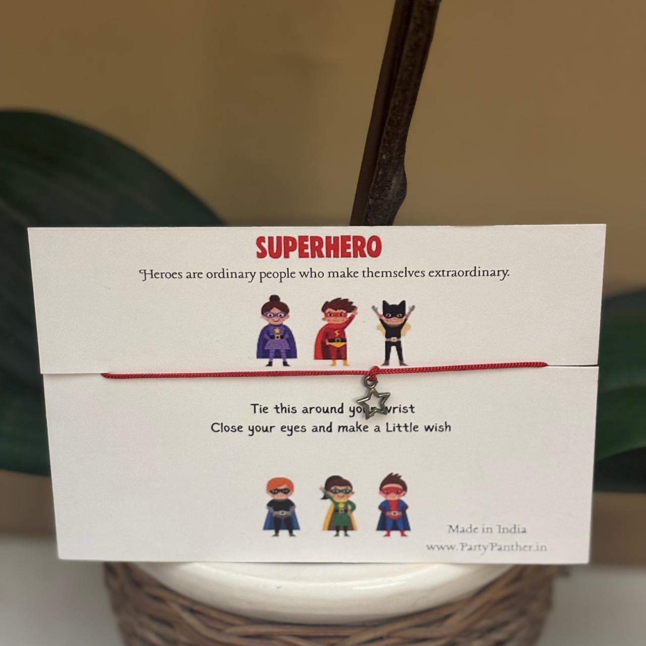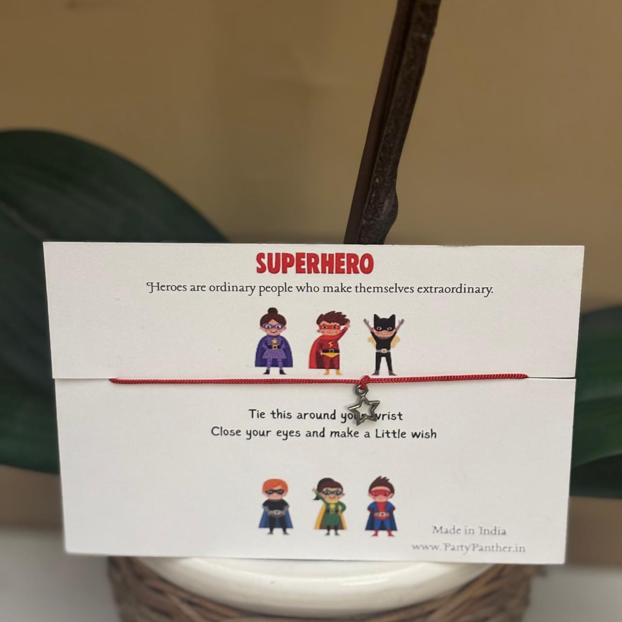 Unleash the power within with our Superhero Wish Bracelet, designed to remind kids that true heroes are made by the choices they make. Featuring a bright red thread and a silver-tone star charm, this bracelet is the perfect token of encouragement and empowerment for young dreamers and defenders of good!
