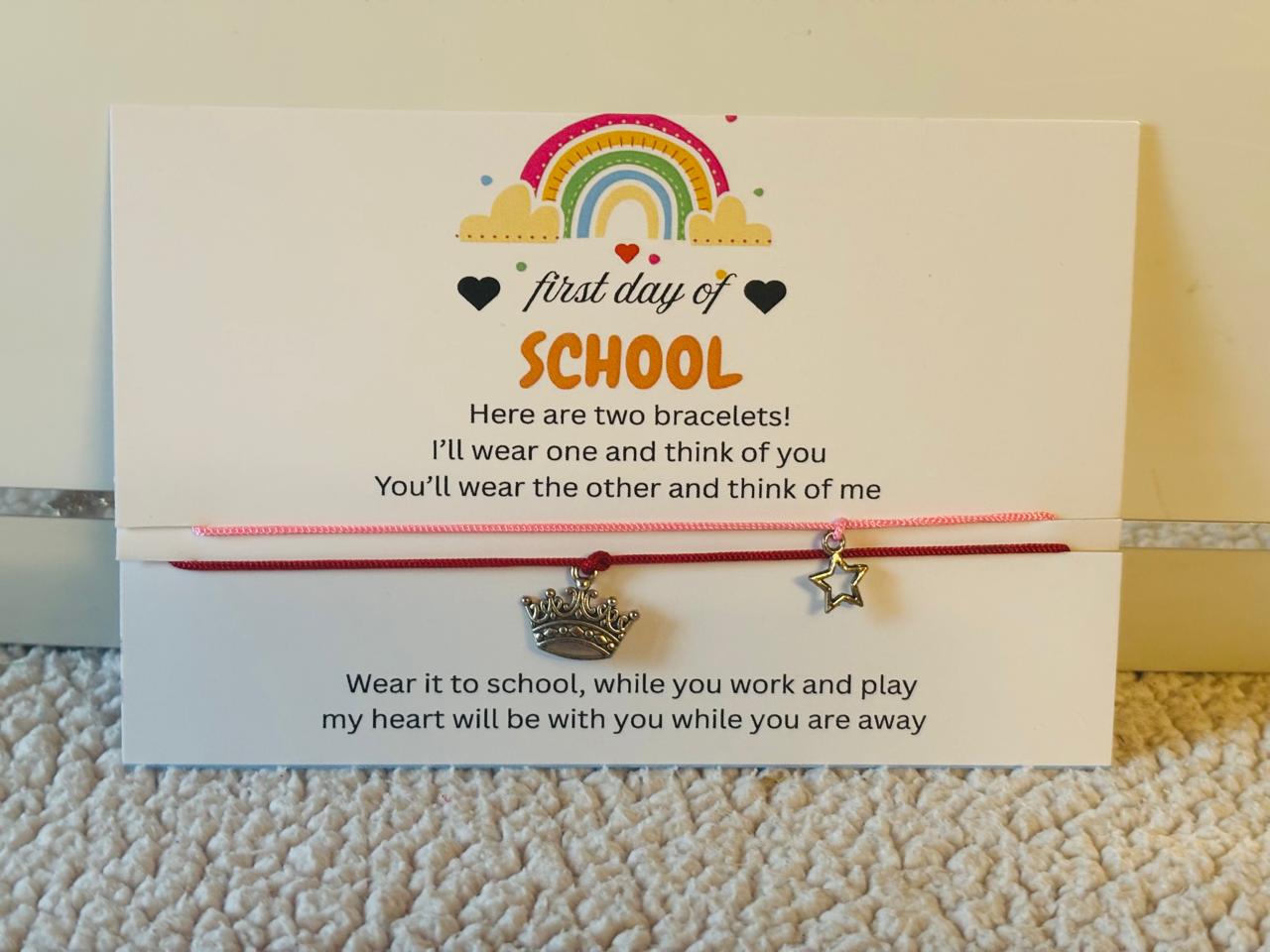 Make the first day of school extra special and emotionally reassuring with this adorable set of Matching Wish Bracelets for parent and child. A beautiful way to stay connected even when you're apart.