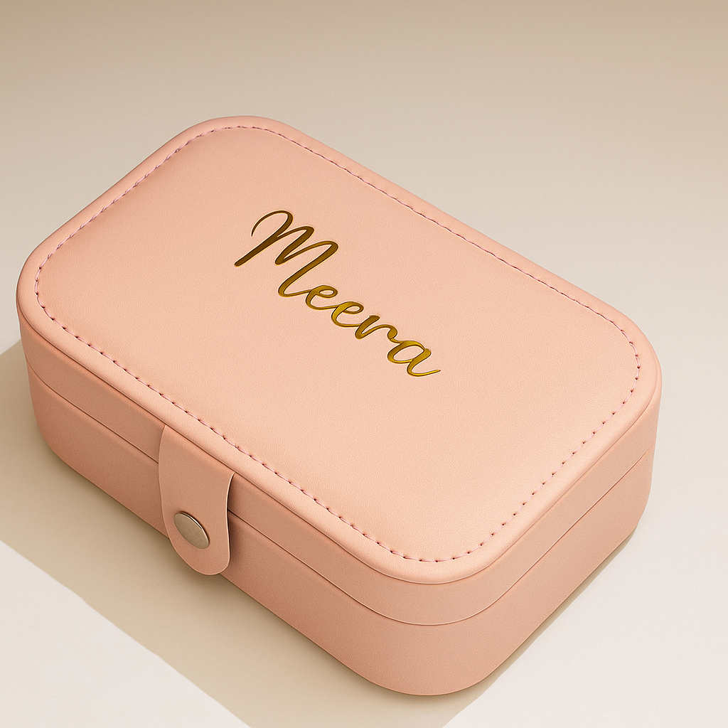 Keep your precious pieces safe and stylish with our Personalized Travel Jewellery Box in a soft blush pink shade. Compact, elegant, and customized with your name, this box is perfect for gifting or treating yourself.