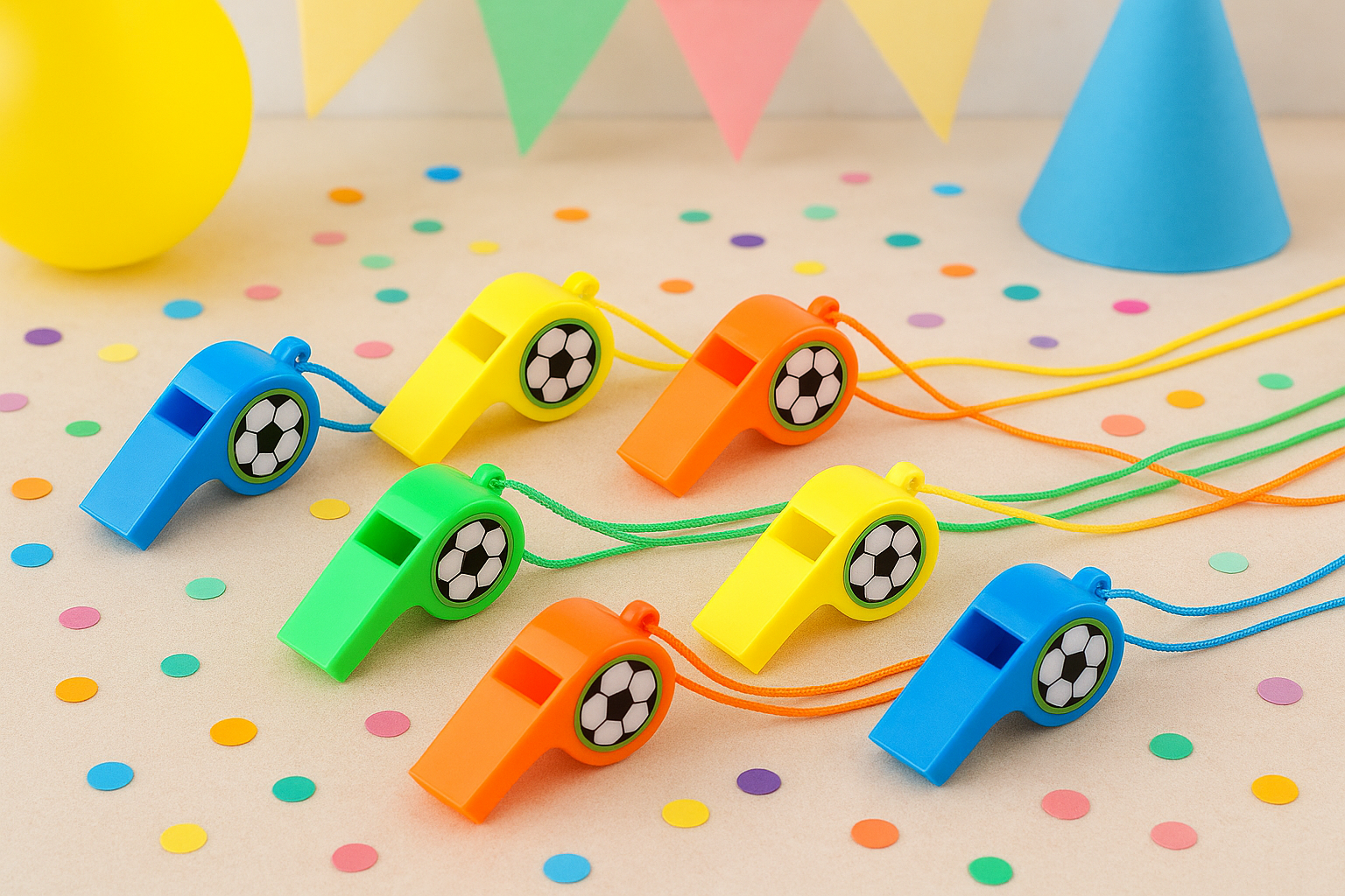 Bring joy, laughter, and team spirit to your party with these vibrant football whistles!